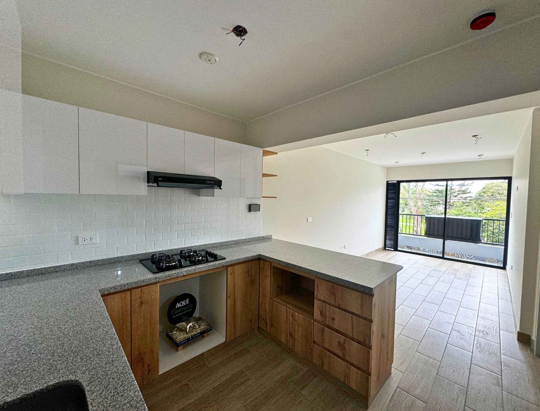 ✅ Cocina abierta tipo americana, con reposteros altos y bajos. Incluye: cocina, horno y campana.